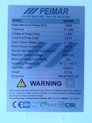 Sul mio ho montato un MPPT 20A TRACER 2210 12/24V. Puoi trovare sulla rete facilmente le specifiche.