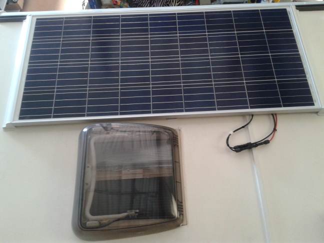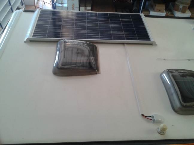 Montaggio pannello in sequenza preparazione dima per foratura passaggio cavi pannello vicino camino sog,,apertura vano interno mobile specchio bagno misurando l'interasse del sog rispetto le pareti vano stesso in modo chela foratura sia centrata posizionamento sul tetto foratura centraggio foratura ok in asse passaggio cavi solari sezione 6mm quadri posizionamento passacavo posizionamento pannello ,inserito diodo protezione pannello fissaggio canalina cavo pannello sigillata sulle teste posizionamento regolatore di carica MPTT 20A ,l'impianto è predisposto e dimensionato per l'installazione di un ulteriore pannello da 100 w per un totale di 250 w foratura per pannello controllo lavoro terminato ore 17,00 portato all'esterno del capannone c'è ancora il sole... non male come resa SODDISFATTO, notare l, incremento del valore di corrente erogata dal pannello solare e quella resa allle batterie +25% Fine ciao a tutti Simon722