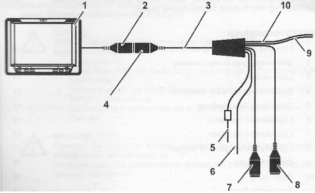 Penile 26, Come promesso, tratto dal libretto di istruzioni del monitor: 1. Monitor 2. spina mini Din a 9 poli 3. Cavo di allacciamento 4. Presa mini Din a 9 poli 5. Cavo da 12v positivo (rosso): allacciamento al polo positivodella sorgente di tensione 6. Cavo di massa (nero):allacciamento al polo negativo della fonte di tensione 7. presa mini Din a 6 poli (allacciamento alla fonte video 1) 8. presa mini Din a 6 poli (allacciamento alla fonte video 2) 9. Cavo verde : ingresso di comando per il collegamento al proiettore di retromarcia 10 Cavo violetto: ingresso di comAndo per la riflessione dell'immagine (telecamera RV-24/N, RV-27/N, RV-30K, RV-30K-F) Claudio