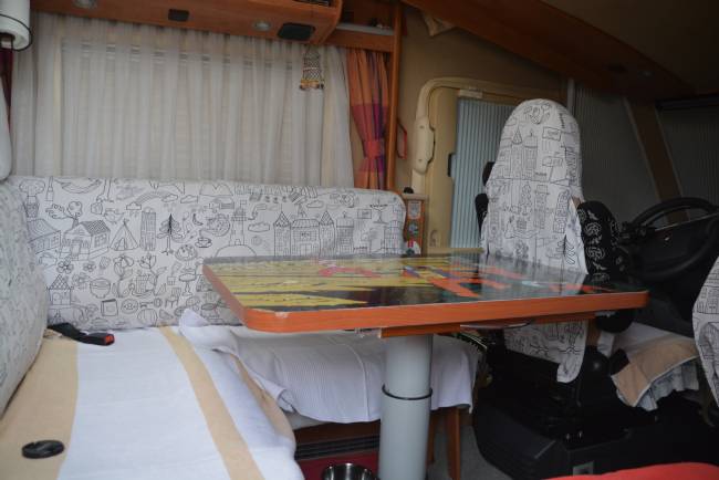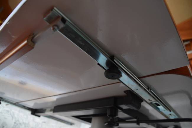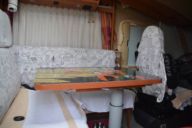 Io ho un I47 del 2008 quindi credo pressoché identico al tuo. Mi farebbero molto piacere le foto. Fra i pensieri, la traslazione avviene in diagonale rispetto alla parete del camper. Questo fa si che un rettangolo si muovastrano ed uno spigolo della guida ingombri più del minimo indispensabile. Per questo pensavo di ruotare il piede del tavolo sul pavimento. Tu l'hai lasciato in diagonale?