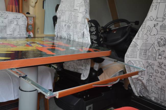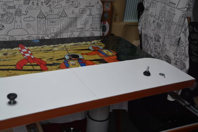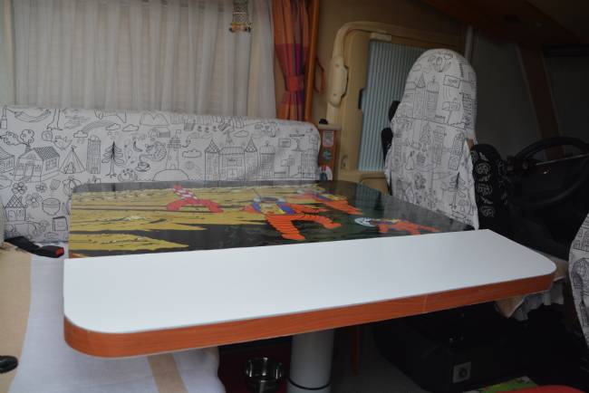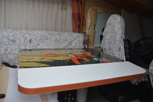 Recentemente ho sostituito il tavolo rotondo del mio i47 del 2007 con un tavolo tamburato fai da te rettangolare misure 95x70 con la possibilita' di allungarlo di 25cm quindi diventa 95x95 cm. Questa prolunga non e' fissa, posso metterla quando serve ,ho fissato sotto al tavolo due guide per cassetti, allungabili che servono per appggiare e fissare la prolunga.