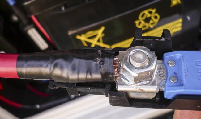 ) è quello che va all'inverter... ma chi ha crimpato quel cavo ha fatto un pessimo e pericoloso lavoro ... Con quelle correnti non si scherza. Ti consiglierei di fare ricrimpare correttamente quei cavi.