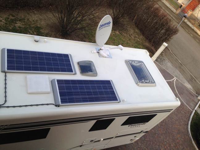 Ti consiglio anche io almeno 2 pannelli da 120W ciascuno, altrimenti a due batterie così non gli fanno neanche il solletico. A mio parere, verifica bene anche la qualità dei componenti. Sul nostro precedente Flair avevamoinstallato due pannelli da 120W + regolatore MPPT della CBE, fidandoci dei consigli dell'officina e senza verificare i componenti. Ebbene, adesso sul Charisma abbiamo sempre due pannelli da 120W + regolatore classico (non MPPT) della Votronic, il tutto installato direttamente dalla Concorde, e i risultati sono nettamente superiori. Non so se sia il regolatore o i pannelli, ma adesso le 3 batterie da 170Ah sono sempre belle cariche. A differenza di Franco, questo è il ruspante montaggio effettuato dalla Concorde. Non so se si vede, ma tutto ciò che è sul tetto è saldamente fissato con viti autofilettanti, altro che Terostat o colle simili. Matteo