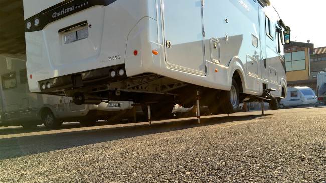 Proprio bello, complimenti!!! Non entro nel merito dei piedini, molto curati peraltro, dei quali non sento la necessita visto il rapporto costo / necessità. Approvo la scelta estetica per 2 motivi: 1. la colorazione è davverobella, in linea con le tendenze attuali (lanciata da Morelo nel 2010); 2. la scelta dei cerchi in ferro molto tecnici. Quelli in lega (che fanno pagare una fortuna) sono orribili come lo erano già quelli sporgenti che montava Charisma nella serie precedente. Roba da furgone Ducato... Hai le sospensioni ad aria anche davanti con i distanziali ai mozzi? Ciao, Giorgio