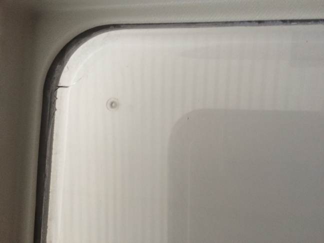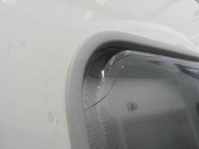 Ciao Lorenzo Questo è l'oblò della porta cellula dove si vede la crepa. Togliendo la guarnizione si toglie l'oblò e si cambia, ma non so come fare. Non ho la foto della pinna posteriore spaccata, appena la faccio la metto, comunque è spaccata sopra, sul tetto. Una crepa di una decina di centimetri.