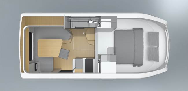 come materiale per la cabina, montare 500Ah di batterie al Litio, 500W di panelli sottili, piano cottura a induzione, e grill esterno integrato.
