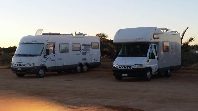 Ciao a tutti la vacanza in Sardegna è finita ma se pur breve è stata piena di emozioni. Tralasciando le naturali emozioni dovute alla bellezza del territorio, delle spiagge ed anche quelle negative relative alla meccanica giàdescritte, questo mio post è per raccontare il piacere di aver conosciuto i nostri colleghi in Sardegna solina e teomat che ormai sono Solange e Matteo. Dai loro post sappiamo quasi tutto della loro passione per il camper ed in particolare per Hymer, ma incontrandoli per quasi 2 gg abbiamo potuto diventare amici come se lo fossimo da tempo (si conferma la caratteristica degli orsi hymernauti). Disponibilissimi, al punto da spostarsi loro di 300 km per venirci incontro ad Olbia, ci hanno accolti la prima sera alle 23,00 in una splendida spiaggia, hanno passato con noi una bella domenica di camper e mare ed anche a distanza sono stati sempre pieni di suggerimenti, indicazioni e premure per migliorare la ns vacanza. Da ricordare la bontà eccelsa del loro mirto (anche caldo quando non funziona il frigo) di cui vanno anche a raccogliere le bacche . Un grazie, un saluto ed un abbraccio a Solange e Matteo Ci mancherete insieme alla vostra Sardegna Aspettiamo la foto del vostro Hymer (o babà) con l'adesivo dell'orso attaccato. Massimo, Valeria e Marina PS Sponsorizzo un incontro di Hymernauti in Sardegna per qualche giorno fuori stagione (non è impossibile). Saluti Massimo