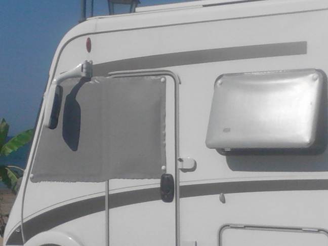 Buon viaggio a tutti... per noi manca ancora una settimana e poi puntiamo il muso verso il mare del Nord... Quanto agli oscuranti ad uso estivo, per il vetro anteriore usiamo quello invernale, fa il suo lavoro molto benee se si bagna... pazienza, poi si asciuga!! per ombreggiare le finestre laterali noi abbiamo due semplici teli sostenuti da ventose. Sono 2 perchè abbiamo 2 finestre a dx e 2 a sx... e quindi il sole dà fastidio o di qua o di là... pubblico alcune foto per farvi capire la semplicità di esecuzione e di posa... poca spesa tanta resa!! Roberto Tra vent’anni sarete più delusi per le cose che non avete fatto che per quelle che avete fatto. Quindi mollate le cime. Allontanatevi dal porto sicuro. Prendete con le vostre vele i venti. Esplorate. Sognate. Scoprite. Mark Twain