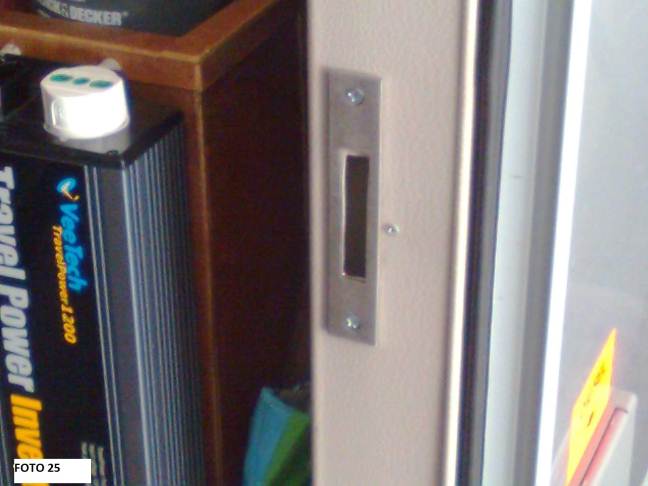 Sull'ex B class per la porta cellula avevo montato una serratura supplementare della A...us nel posto predisposto da hymer. Per la porta lato guida oltre che alla serratura già di suo non proprio economica, serve anchel'adattatore in plastica e per il tutto mi era stata chiesta una cifra esagerata per cui ho rinunciato.......ma non mi sono demoralizzato. Qualche mese dopo mi è capitata una serratura di una porta delle cabine di media tensione della corrente e mi sono messo all'opera per trovare il modo di montarla Il lavoro è venuto abbastanza bene con una spesa di solo 7€ per il pomello interno.....naturalmente non è possibile aprire ho chiudere dell'esterno. Nell'ultima foto è visibile la contropiastra dove si inserisce la mandata della serratura.....la piccola vite che si vede sorregge uno spessore messo a rinforzo della plastica. Se a qualcuno può servire ho le foto che documentano tutte le fasi del lavoro. Buona serata a tutti Alessandro