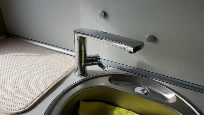, ha la forma dello stelo obliquo identica a quella di quello del bagno, però, come puoi vedere(anche se in parte) nella mia ultima foto, ha la parte bassa dello stelo principale che contiene il miscelatore, poi si vede un "anello" che ha solo la funzione di separatore tra il gruppo miscelatore e la parte superiore che è quella con il braccetto alla cui estremità c'è l'uscita dell'acqua. Quello nuovo è comunque molto più "furbo", solo il miscelatore di fianco non è il massimo della comodità.