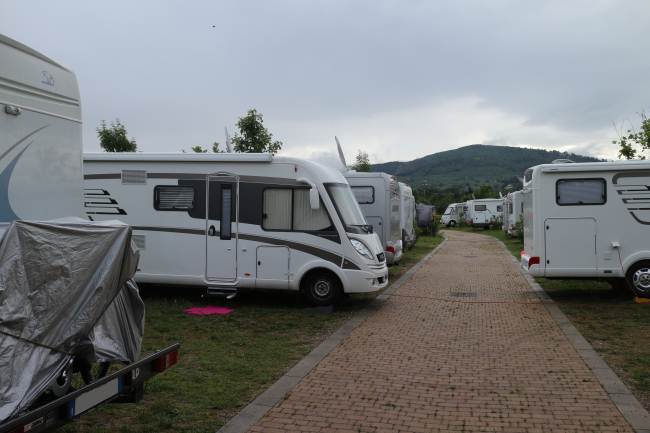 Ciao Tommaso inutile dire che la tua mancanza è stata molto sentita, tutti desideravamo vedere il tuo 'panzer' e chi non ti conosceva finalmente vederti di persa. Purtroppo non sempre si riesce a fare quel che si vorrebbee bisogna saper accettare anche se con dispiacere, speriamo ci sia una prossima volta. La nuova AA di Firenze è praticamente un campeggio anche se, come tale, un po' spartano ma completo di quanto può servire ad un itinerante e da ospitalità anche a roulotte e tende. In effetti le piazzole sono un po' strane in quanto in forte ed illogica pendenza ed inoltre poco profonde, una camper di 7 mt. ci sta appena. Molto è lo spazio in senso parallelo al vialetto però dicono ci debbano stare 2 camper. Comunque c'erano moltissimi stranieri e tutti parcheggiati paralleli alla strada con molto spazio a disposizione. Noi per essere più vicini e comodi per fare la tavolata nel vialetto ci siamo messi in questo modo ma eravamo solo noi e non abbiamo avuto alcun problema per uscire. Per il 'panzer' avevamo localizzato una bella piazzola, in pendenza e con terreno molto smosso, ti saresti davvero divertito e.....pure noi!!! Alessandro La vita è un viaggio, chi viaggia vive due volte.