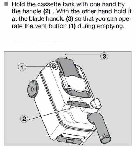 Non so se è lo stesso di Valter, ma è di sicuro il mio e condivido le difficoltà di Valter. Io ritengo però che il problema sussista solo per i destri (o almeno per me che forse non sono il massimo della manualità),provo a spiegarmi anche se è da un po' di tempo che non scarico la Thetford: con la C250 scaricavo tenendo la cassetta con la mano destra dal manico su cui andava a gravare il massimo del peso con cassetta piena e la sinistra aveva un pratico appiglio per andare a premere il pulsante di svuotamento. Lo scarico era per me preciso perché anche quando avevo tutti i 17kg la destra aveva tutto il controllo e la sinistra aiutava senza dover sostenere di fatto alcun peso. se guardi il disegno della CT4000 che hai postato anche tu e la foto qui sotto invece ti puoi forse rendere conto che sul retro l'unico appiglio è la maniglia della saracinesca. In quelle condizioni per me l'unico modo di scaricare è tenere il peso con il braccio sinistro perché con la destra devo fare l'equilibrista tenendo le dita aggrappate alla saracinesca e con il pollice premere il pulsante di sfiato. E da qui anche la mia lamentela sul fatto che guanti o no io la mano la devo mettere nella saracinesca, la stessa mano che magari ho usato per rimuovere il tombino. Mi rendo conto che è difficile capire da una mera descrizione, ma quando dovrai scaricare penso te ne renderai conto ed eventualmente magari troverai una soluzione più pratica della mia. Ciao, Marco