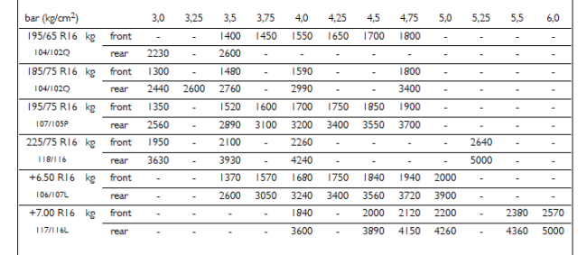 Chili Pepper Innanzitutto devi verificare la pressione delle gomme, che peraltro non hai indicato a quanto hai gonfiato. Ti allego un estratto del manuale di officina IVECO per il Daily S2000 (99-2006) ma puoi renderti contoda solo dei valori consigliati Personalmente, con un peso tipico di almeno 4000 kg in ordine di marcia (omologato 4200) tengo a 4,5bar posteriori e 4,75bar anteriori le mie Michelin Agilis Camping. Le anteriori a 4,5 mi davano un comportamento accettabile, a 4,25 avevo lo sterzo gelatinoso e a 4,75 mi piacciono di più. Dietro monto i soffietti (credo ALKO) ma stanno quieti a 0,8 e MAI ho pensato di alzare la pressione. Ho letto peste e corna dei soffietti su Daily, li ho trovati e non ho voglia di smontarli ma li tengo al minimo possibile. L'altra cosa che ti consiglio di verificare, visto che parli solo di curve a destra, sono i parametri delle sospensioni (cioè convergenza, camber e incidenza) per essere sicuro che non ci siano altri problemi (sgrat!). Roberto Laika Kreos 3002 (35C17-2005)