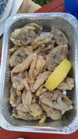 Chi suona stasera? con le rane fritte e in umido ci metterei anche lo spiedino di calamari e gamberi con contorno di pomodori gratinati. Domani cappelletti, castrato e fagioli con cipolla Max