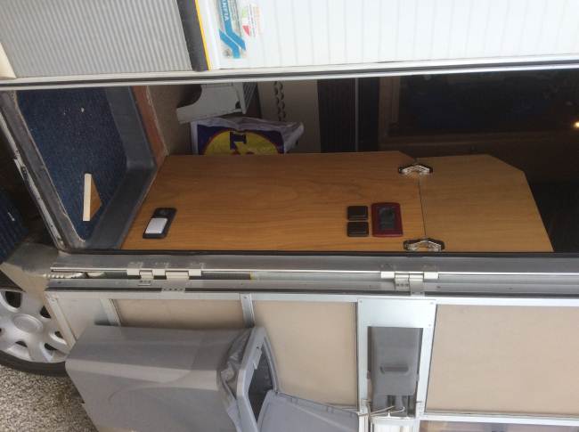 Veramente una bella soluzione, dacci qualche dettaglio tipo, le cerniere le hai fissate con viti passanti? Il piano è stabile o necessita di una gamba o staffa, la moglie è contenta?