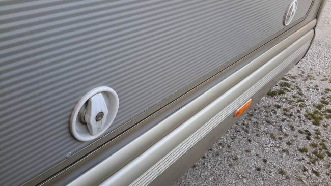 qui una buona guida di Massi 68 le serrature sono comuni a molti camper e caravan, le bollicine vanno riparate da dentro và bene un normale stucco poliestere bisogna asportare tutta l'ossidazione e trattare il nudo alluminiocon cloro o varecchina seria,il pannello và riverniciato con vernice AR 270 ( Alfa Romeo 33 quadrifoglio ) anche le guarnizioni ( interne ed esterne ) sono comuni con altri camper e caravan, una volta rifatto il listello le serrature terrano a dovere sulle nuove guarnizioni interne quelle esterne sono di minima tenuta a fine di parapolvere,per incollare il pannello và benissimo il WD4 essendo espandente và morsettato o sotto peso, per sigillare la cornice al pannello ok Axton o similari MS Polymer Laikista Ecovipparo x passione