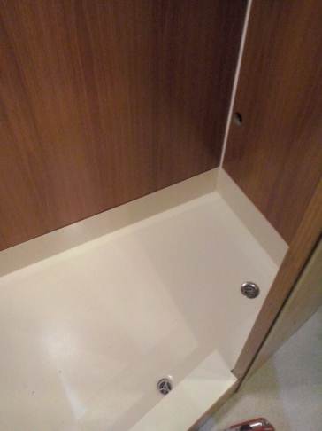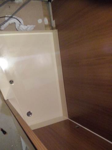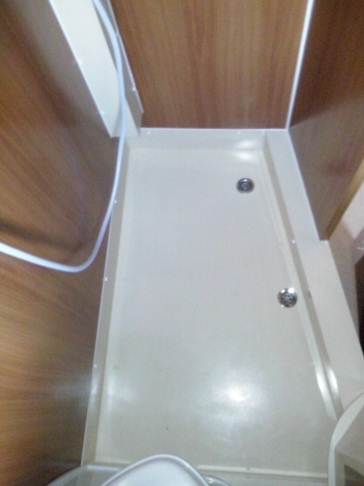 Buon giorno nando 2 , e' autocostruito in alluminio da 15/10 con saldatura esterna a tig e interna a filo, poi ho verniciato a polvere elettrostatica in due mani : la prima utilizzando un 1015 raggrinzato, la seconda un trasparente lucido. Ho cosi' ottenuto una superficie leggermente ruvida antiscivolo, dove pero' il trasparente evita l'accumulo di sporco. Il piatto e' diviso in due parti : la vasca e una canalina dove passano i tubi e fili dei servizi sempre ispezionabile.