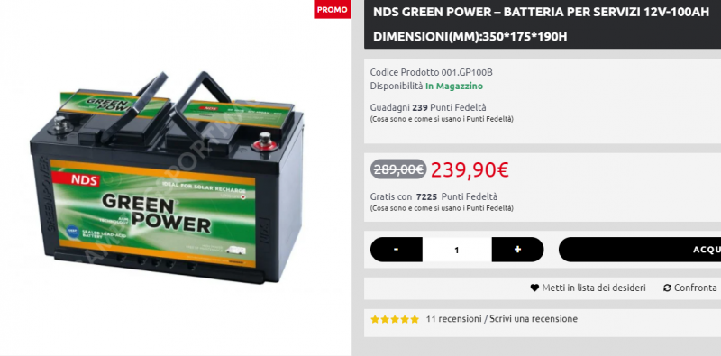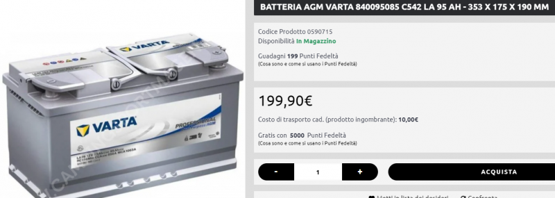 il montaggio delle litio non è mai plug & play se si intende fare un bel lavoro, in quei 1900€ sono compresi anche altri lavori oltre alla batteria e all'eventuale manodopera. Come NDS AGM, per rimanere sullo stessomarchio c'è questa: Se vuoi spendere un po' meno potresti pensare di spostarti su Varta. Ora costa 199€ ma a volte va in sconto intorno ai 160€ Su entrambe le versioni male non cadi. Indipendentemente dal marchio che monterai, a parte la realizzazione del parallelo tra le due batterie non dovrai fare altro all'impianto.