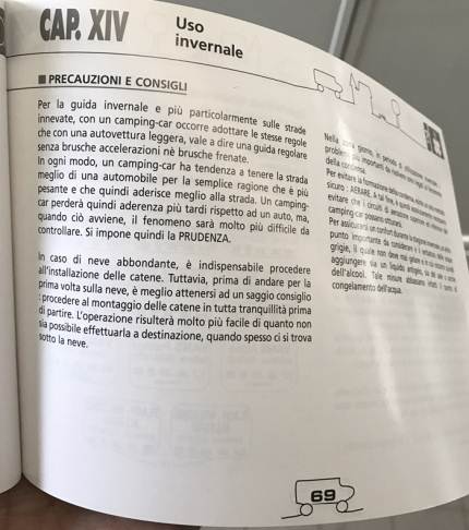 Buona sera a tutti, ho un Rimor Xgo Dynamic 28p su transit 2,2 del 2010 che purtroppo non è catenabile su libretto con misure standard 215/75/16. Mi chiedevo se con le catene a ragno sarei a posto legalmente o in casodi incedente/controllo potrei avere comunque dei problemi? Montare 4 invernali sarebbe la scelta migliore ma lo uso davvero poco d'inverno (1000-1500km) e prevalentemente in pianura quindi non mi sembra molto conveniente. Diciamo che mi interessa essere a posto legalmente e avere la tranquillità di non rimanere bloccato in qualche spiazzo in lieve pendenza. grazie