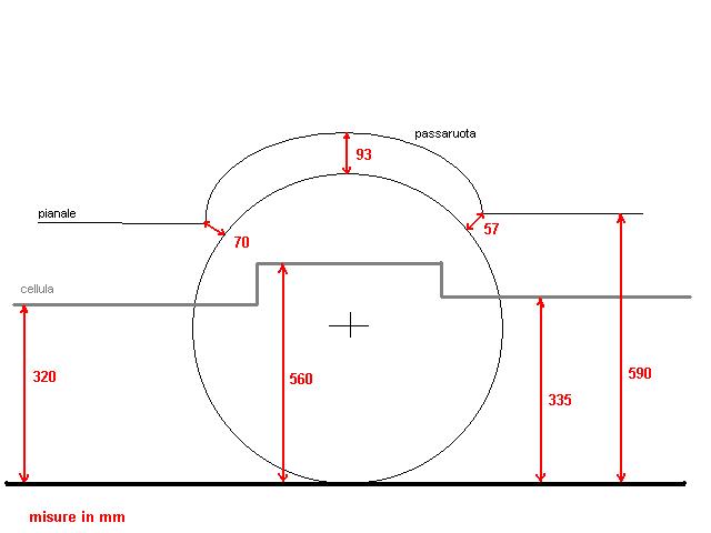 Ad inizio anno avevo posto un quesito riguardante il problema di "fondo corsa" dei miei ammortizzatori posteriori. A tal riguardo ho sostituito gli ammortizzatori posteriori originali con degli ORAP rinforzati pensando di risolvere il problema. Ora dopo aver riscontrato nuovamente questo problema volevo chiedere alcune cosa a chi possiede questo VR. Per prima cosa e meglio spiegare che l'inconveniente mi succede quando entro in una serie di avvallamenti della strada. A questo punto mi capita che le ruote posteriori tocchino i passaruote. Come già qualcuno mi disse probabilmente sono troppo carico. Ok ci sta che sono carico ma poi guardando la situazione ruota/passaruota ho trovato dei passaggi veramente risicati. A tal proposito allego un disegno: Il punto dove entra in contatto la ruota è quello dove ci sono 57mm tra il passaruota e la ruota. (il disegno rappresenta la ruota posteriore sx) Ora mi c'è qualche proprietario che può effettuare le stesse misurazione sul suo mezzo per confrontarle? AIUTOOOOOO. Grazie Giorgio [V]