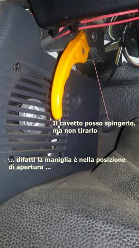 In seguito al tuo accaduto mi è venuta l'idea di attaccare una cordicella volante al meccanismo di apertura (il mio molto diverso perchè motorhome) agganciata e nascosta fra la mascherina...da provare! Meglio prevenire! Ciao Giù!