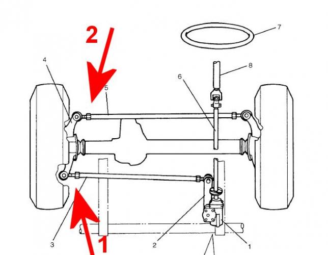 qua si vede, la freccia n°2 è la regolazione della convergenza che ovviamente agisce su entrambe le ruote.