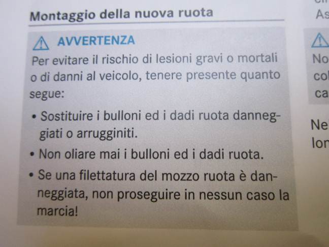 fra i quali l'allentamento é forse il meno probabile. Il problema é: quanti gommisti consultano o si sono fatti una tabellina del genere?