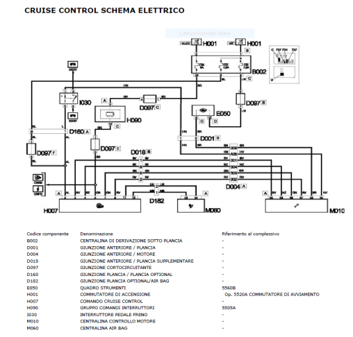 Credo sia importante vedere anche se c'è il connettore D004A, che unisce centralina motore, interruttore freno, spia quadro strumenti e leva cruise control
