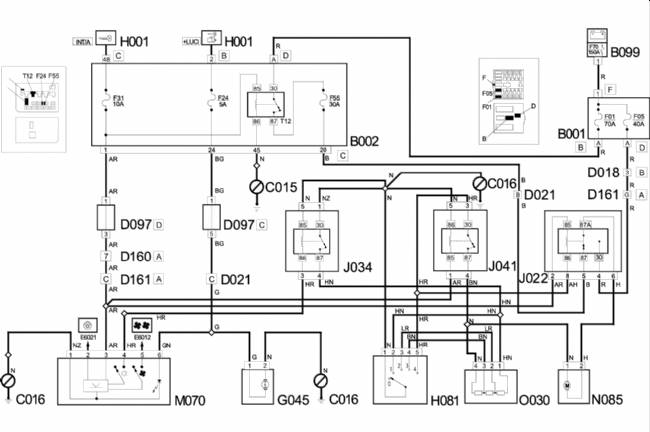 La resistenza c'è per le altre velocità , per la massima c'è il relay J041 che collega direttamente il motore. O almeno così mi sembra di capire dallo schema: Il relay J041 dovrebbe essere qui, ma non riesco a capire dovè: Non so se intende nella scatola porta fusibili o se è da qualche altra parte... Ciao Davide