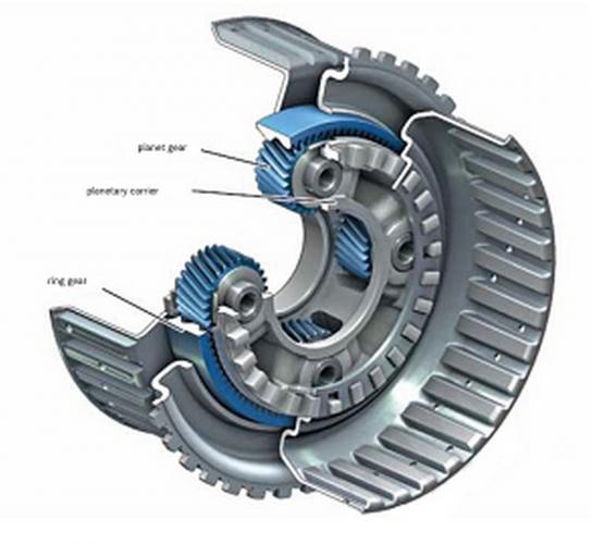Questo è il planetario del 9G-Tronic, 4 satelliti invece dei 3 di Toyo, nel funzionamento deduco uguale, per me sono 4 per via della retro, che in Toyo avviene solo in elettrico. Comunque c'è una specifica per le ibride.