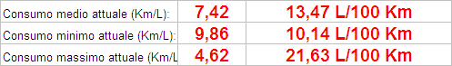 Purtroppo la rilevazione da pieno a pieno può essere inficiata da un sacco di variabili, per cui una rilevazione su un solo pieno è come fare un exit poll su un solo elettore... Per fare un esempio: può influire la quantitàdi schiuma nel particolare pieno a quel particolare distributore. Sono anni, e più di 800000 Km di rilevazioni, che tengo dietro ai pieni effettuati con le varie auto e camper che ho avuto. Quando vado a fare un pieno, in base alla posizione della lancetta so già litro più litro meno quanto dorvò mettere. Però una volta mi capitò che la pistola scattasse con larghissimo anticipo. Non avevo fretta e rabboccai fino a vedere il livello del gasolio in prossimità del bordo inferiore del tappo (e questo è un vero pieno fatto a tappo). La differenza era di 4,5 litri su un serbatoio da 60 L. Stiamo parlando di un 7,5% di differenza. Se avessi tenuto buono come pieno il primo scatto della pistola, avrei falsato la mia misurazione del 7,5%, ossia anziché i 9 km/l effettivi avrei rilevato erroneamente 9,7 km/l. Anche la natura del percorso influenza i consumi se hai salita o discesa, vento contro o vento a favore, pieno carico oppure completamente scarico, ... Non per smorzare il tuo entusiasmo iniziale, però... Per avere un'idea corretta di quali saranno i tuoi consumi, aspetta di aver fatto una ventina di pieni, ossia circa 10000 km e poi ne riparliamo. Ciao da Dash (Ho un Daily 35C17) Ecco un copia/incolla dal mio foglio Excel delle rilevazioni consumi. Le rilevazioni effettuate sono su un totale di 100 pieni.