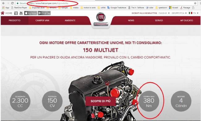 Nel mio caso, sulla proposta irrevocabile d’acquisto c’è scritto solo 150CV ... Mentre sul pdf Knaus, c’è scritto: Fiat Ducato 3.500 kg 2,3 l Multijet 150 (110 kW/150 cv) – nessun riferimento sulla coppia
