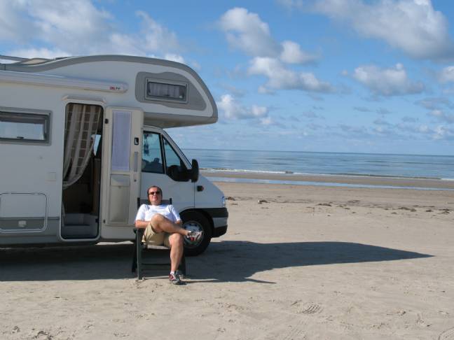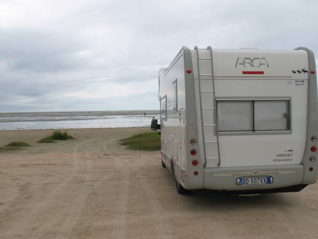 Spiagge dove potere accedere in camper ce ne sono parecchie, senza andare tanto lontani, la Plage de Piemanson in Camargue (N43°20'59.5 E004°47'01.4) , oppure bellissima la spiaggia Sonderstrand all Isola di Romo in Danimarca(N55°04'53.6 E008°31'15.7) di cui una foto: però, dopo essermi scottato non mi sono fidato e quindi ero l'unico camper a essersi fermato nel parcheggio prima della spiaggia: Comunque anche con l'attuale camper, mica me la vado a cercare, e sulla spiaggia non ci metto piede.....o meglio ruota. Tommaso IZ4DJI www.iz4dji.it