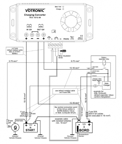 Il lavoro fatto nel miglior modo possibile sarebbe di sostituire tutto il cavo eventualmente anche con uno di sezione superiore visto che ci passerebbero fino a 50A. nei morsetti del booster votronic ci entrano cavi fino a che sezione ? quanti metri e' lungo il cavo tra BM e booster ? (i due link forniscono risultati diversi !)