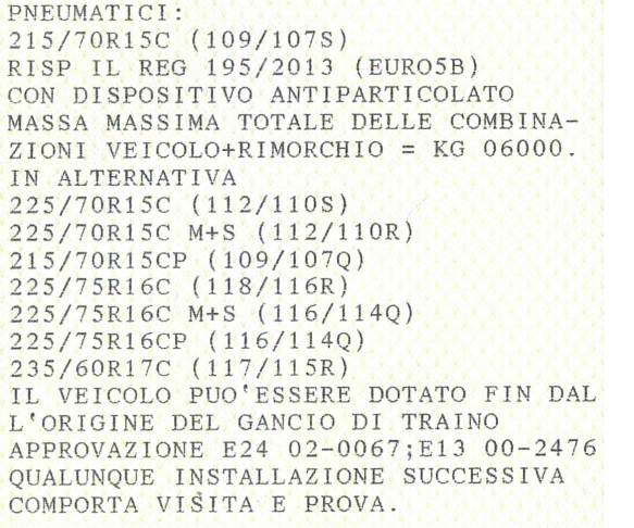 io sul malibu ho omologato le 215/70R15 C/CP 109Q alternativa 215/75R16 C/CP 113Q 225/75R16 C/CP 116Q quindi restando nei cerchi da 15 posso solo scegliere se di tipo C o CP Costantino
