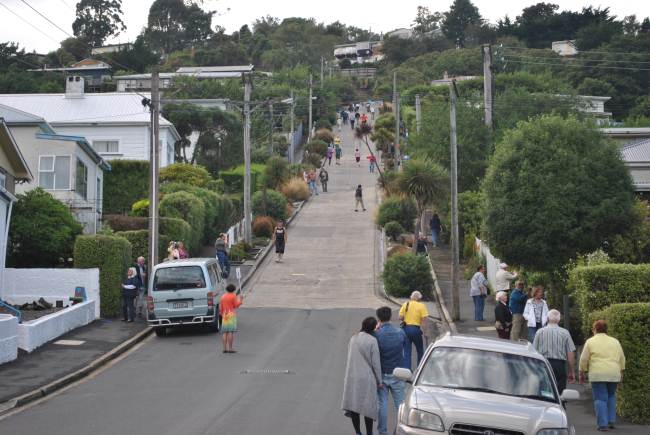 Questa pare sia la strada più ripida al mondo, più della Lombard street di San Francisco, dove almeno hanno fatto le curve, in inverno qui nevica e mi domando come fanno a raggiungere casa, dalla foto non sembra molto ma è ripidissima ( Dunedin - Nuova Zelanda)