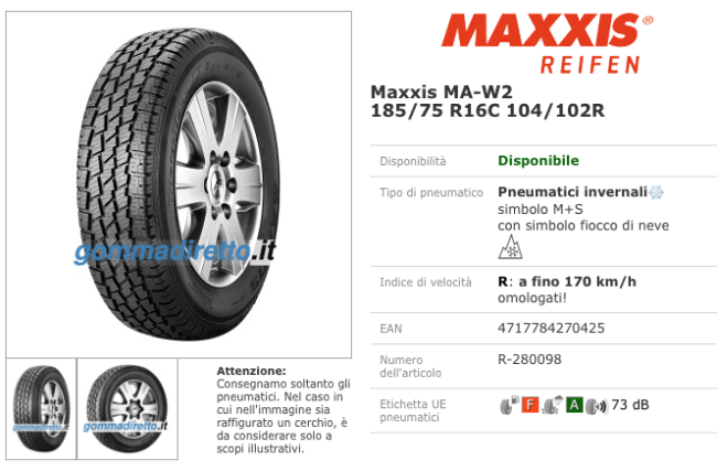 Finalmente ho deciso .... dopo varie notti in bianco la scelta è caduta sulle Falken 185/75 R16C Eurowinter Van 01 invernali in classe E per i consumi e A per tenuta sul bagnato. Dal gommista locale montate tutte e 6 a€ 500,00, visto che comunque le dovrò cambiare tra 3/4 anni le finisco, eventualmente se in estate dovessi avere problemi di manegevolezza sull'anteriore, posso sempre montare 2 gomme estive e lasciare dietro le invernali che mi aiuterebbero nei paddock dei campi da cross. Grazie a tutti per i preziosi consigli, a presto.