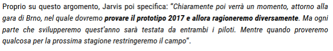 Questa è una cosa che non riesco a capire... Cosa fai il mercato piloti ad inizio stagione. Lo sai che poi se decidi di lasciare il team questi ti tratteranno come un pilota di serie b... Mah...