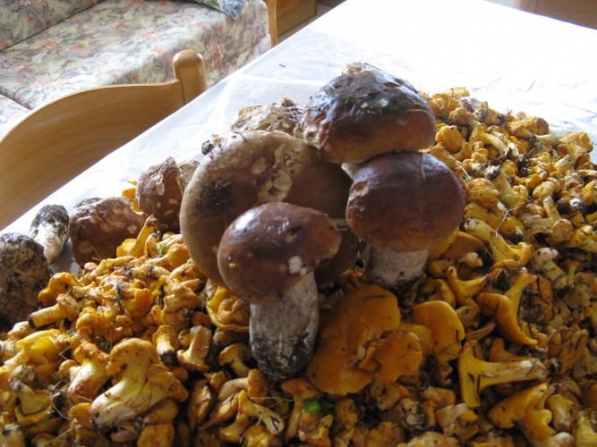Nel giardino del mio condominio mi crescono le amaniti falloidi, i boletus elegans, qualche russula (non commestibile) e ultimamente i chiodini (vedi foto). Tempo addietro avevo anche una cospicua scorta di coprini (altra foto), un fungo buonissimo e delicatissimo, ottimo crudo o col risotto! elio