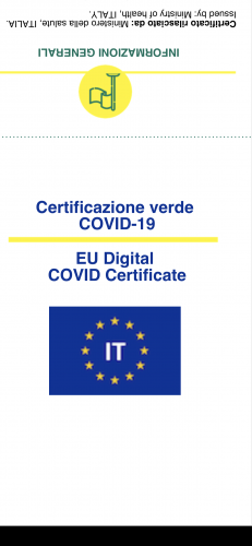 Oggi mi è arrivato un SMS dal Ministero della salute che mi invita a scaricare la Certificazione Verde Covid-19 con tanto di codici per scaricarla ed istruzioni. L'ho scaricata ed è valevole per 270 giorni ( 9 mesi )Sul sito è disponibile la versione cartacea ed anche il solo QR code che uno si può fotografare ed esibirlo alla richiesta In teoria ora possiamo muoverci per mezza europa senza troppi sbattimenti. Speriamo! Ciao