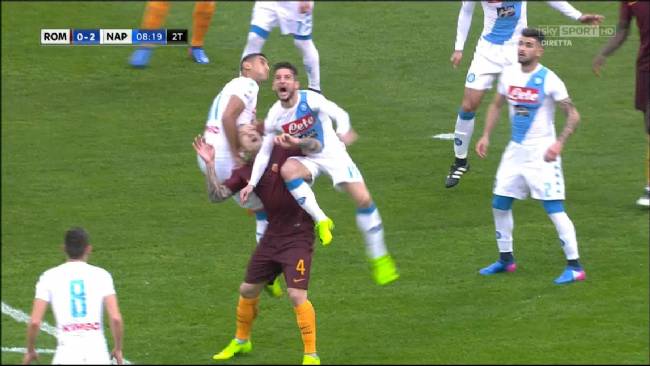 ehm.... a proposito di antisportività, niente da dire sullo sgambetto da terra su Reina da parte di De Rossi , peraltro con un'ammonizione precedente sul groppone?