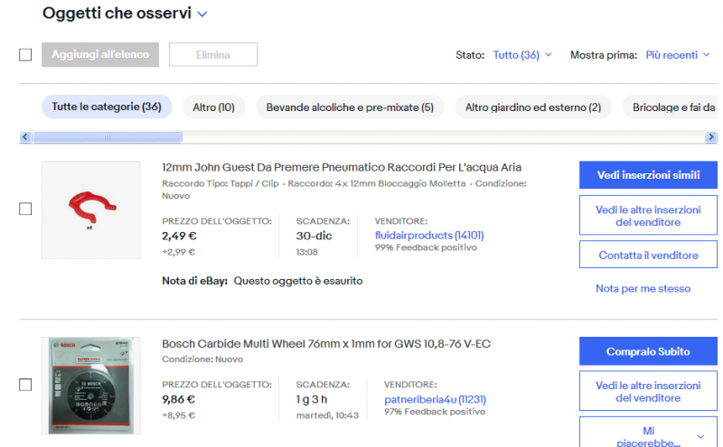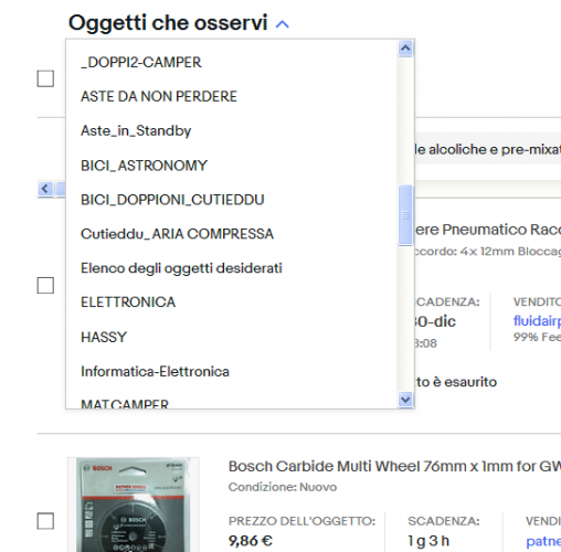 Grazie della risposta, Giuseppe, no, il problema me lo da solo con il mio ebay...in pratica, ripeto, è cambiato tutto!! Mi da solo un elenco di 50 prodotti che tengo nella lista aggiungi a oggetti che osservi per pagina, e me li divide per categorie in diverse pagine...insomma tutto stravolto
