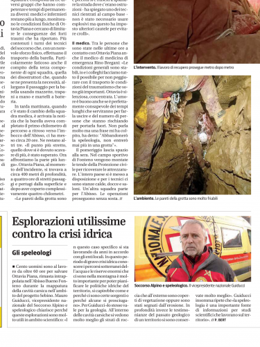 In risposta al messaggio di Giovanni del 17/12/2024 alle 20:15:01Potrei anche essere d’accordo per principianti che creano questi allarmi, ma in questo caso parlare di ‘speleologhi impreparati’ mi sembra proprio fuori luogo. Sarebbe meglio informarsi prima….