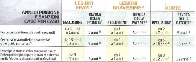 In caso di incidente, le sanzioni previste dal nuovo codice della strada, sono molto pesanti anche per semplici lesioni (da un anno e sei mesi fino a 3 anni). Per lesioni gravi si può essere condannati da due a quattroanni... e per finire, da 5 ad 8 anni se muore qualcuno. Il ritiro della patente, in questi casi, sarà certo e non verrà più restituita per diversi anni (anche 30). Tutto ciò, può succedere se si causa un incidente, anche se non si è ubriachi o drogati, ma anche per una semplice distrazione, che violi il codice della strada. Una mancata precedenza, un incidente causato da gomme usurate, per una revisione o patente scaduta, per eccesso di velocità, per una condotta di guida non adeguata in città (anche entro i limiti di velocità), per il passaggio con il rosso ad un semaforo, per guasto meccanico causato per incuria del mezzo, per l'investimento di un ciclista o di un pedone anche al di fuori delle strisce pedonali, in una zona poco illuminata, dietro una curva, ecc. ecc. Ma... udite udite: è da tenere ben presente, che se si causa un incidente stando alla guida di mezzi con un peso superiore ai 35 quintali c'è un significativo aggravio della pena. Il dubbio è il seguente: questa norma, che inasprisce le già pesanti sanzioni previste dal nuovo codice della strada, è valida solo per i mezzi pesanti che superano normalmente i 35 quintali e che per tale peso sono omologati o... peggio ancora, ed a maggior ragione, può venire applicata ai V.R. che superando i 35 quintali, non sono quasi mai in regola, perché sforano tale limite? Occhio ragazzi... qui non si tratta più di rischiare multe o di subire rivalse assicurative, che ti fanno vendere il camper e la casa. Qui si rischia di andare in galera un po' più del dovuto, ma spero di sbagliare. Qualche avvocato, se presente nel forum, può darci lumi?