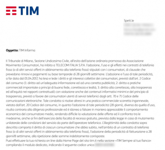 Grazie. La pagina del LINK però si intitola: richiesta rimborso fatturazione 28 giorni per clienti cessati . Tu quindi non sei più cliente TIM?