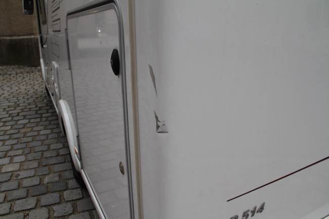 Durante l'ultimo viaggio in Scozia , nella fase di rientro passando da Monaco di Baviera sono stato tamponato con lo specchietto da un furgone che mi ha procurato una leggera ammaccatura proprio nello spigolo posteriore del camper. Avendolo rimessato a Verona, questa mattina il perito è andato a fare il sopralluogo.