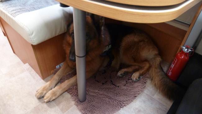 e fa finta di niente. Però, ora che si è piano piano abituata, senza che nessuno le dica niente, lei a volte se ne va nella sua cuccia sotto la dinette.