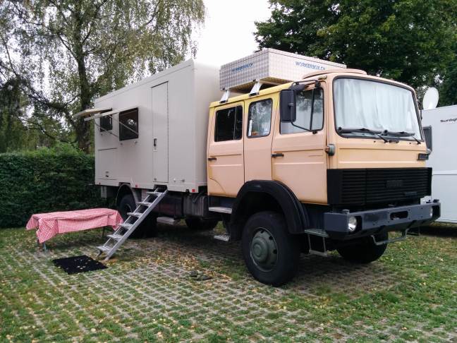 Proprio su MAN. Con un'altezza della cellula da 6 gradini, un po' come quel MAN che si vede nel tuo msg del 09/09/2015 : 10:58:09. Però quello lì ha la cellula forse scarrabile (e non ha la mansarda), quello rosa che dico io ha la mansarda raccordata con la cabina, pochissime finestre (come quello grigio della prima foto).