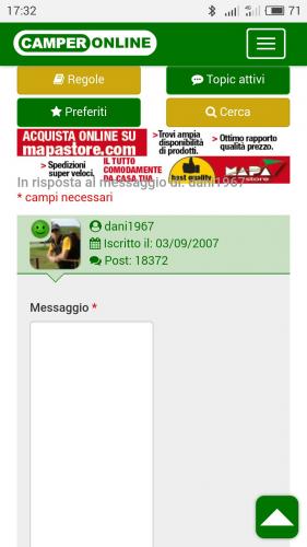 In risposta al messaggio di Lo Staff di CamperOnLine del 28/06/2017 alle 17:37:08Cosi mi appare sul tablet. Sullo smartphone