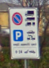 Nel censimento in corso per la ricerca della soluzione del quesito dove posso dormire stanotte?, il nostro programma si è bloccato perché l'amico, che ne capisce molto più di me di informatica, non aveva previsto questosegnale: Si vede male perché più di cosi non è possibile ingrandire senza perdere ulteriore dettaglio ma onore a questo Comune che più chiaro di così non può essere e questo cartello è presente in diversi parcheggi del suo territorio. Il comune, per onor di cronaca, è Albignasego, provincia di Padova. Più chiaro di così... il parcheggio è riservato alle auto ed alle autocaravan, entro gli appositi spazi, per l'intera giornata. Giovanni